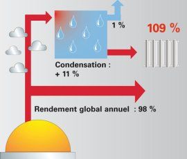 Une chaudière à condensation permet d’augmenter le rendement de 20% en moyenne par rapport à une chaudière standard.