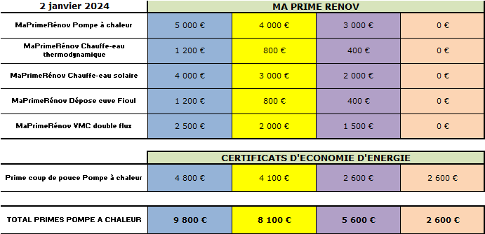 - Prime pompe à chaleur chauffage : 10 000€
